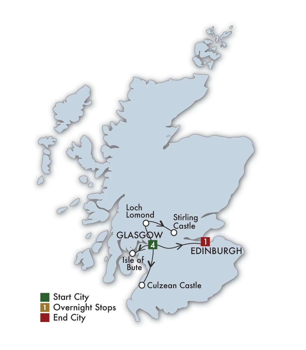Your tour departs from your hotel at 2:00 PM. Your hotel for the next four nights is in the heart of Glasgow’s vibrant West End near the Botanic Gardens. Take a panoramic tour of the city, famed for its Victorian and Art Nouveau architecture. Once a prosperous port city due to international trade and shipbuilding, today Glasgow is Scotland’s cultural hub. Enjoy a welcome drink with your group and dinner at your hotel. (D)
